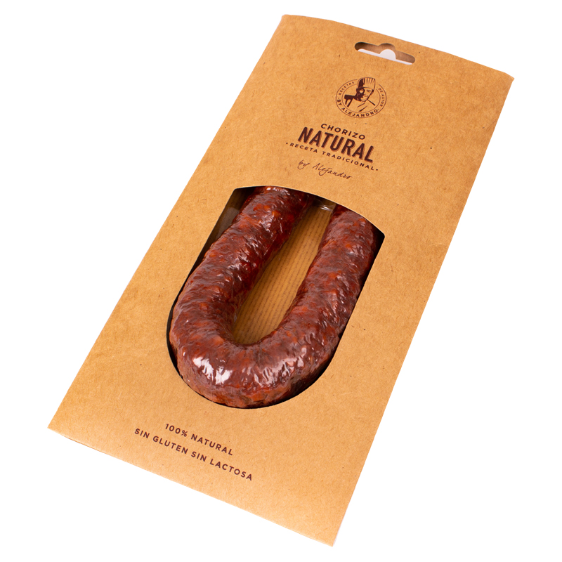 This premium Spanish chorizo is handcrafted by Embutidos Alejandro in Logroño, La Rioja, using only natural ingredients to achieve maximum flavor. Seasoned with paprika, garlic, salt and spices, it contains no preservatives, coloring agents or gluten. Ready to eat straight from the package, it brings traditional Spanish charcuterie quality to your table.