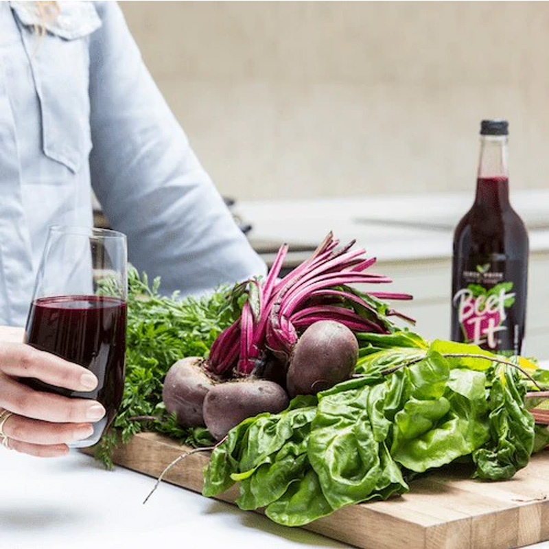 Beet It Organic beetroot juice is a premium, unfiltered juice made from 90% organic beetroot and 10% organic apple juice, bottled fresh in Suffolk. The apple juice smooths the earthy aftertaste of beetroot while keeping sugar content lower than typical fruit juices. Beetroot juice is a natural source of dietary nitrate, making it ideal for those seeking nutritional enrichment. Consume a glass daily as part of a balanced diet, and enjoy the natural sediment that may settle at the bottom of the bottle.