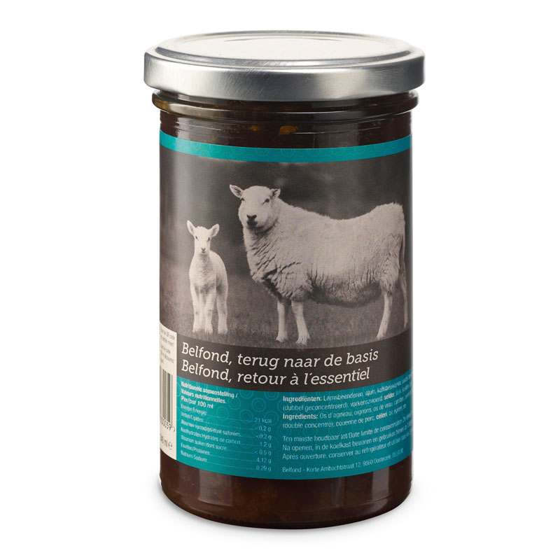 Traditional Belgian lamb broth crafted with quality ingredients, free from salt, flavor enhancers, and preservatives. Perfect for enriching meat dishes with authentic, deep flavors.