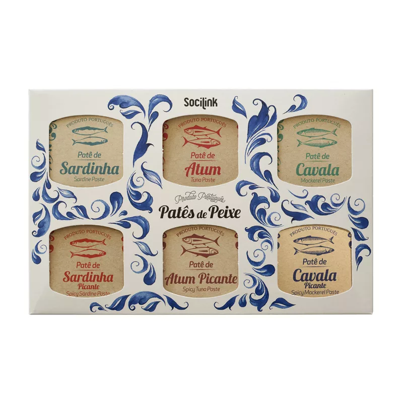 This exclusive set celebrates Portugal’s rich fishing heritage with six artisanal fish pâtés, each 65g. Combining traditional Portuguese fish with carefully selected spices, bySocilink creates premium canned pâtés that elevate canning to a fine art. Each pate is handmade and hand-packed, offering authentic flavour and prestige. The collection includes three classic varieties (sardine, tuna, mackerel) alongside their spicy counterparts, perfect for discerning palates seeking gourmet quality.