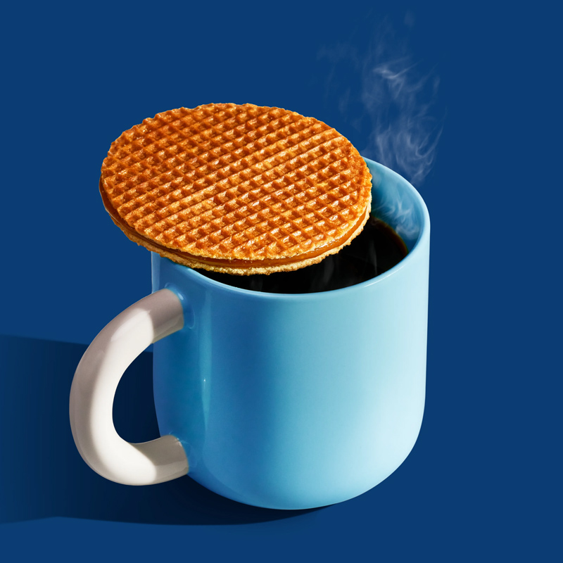 Delicious Dutch caramel stroopwafels with crispy waffle layers and soft butter syrup filling enriched with natural Bourbon vanilla. A beloved treat since 1904, made according to traditional family recipe.