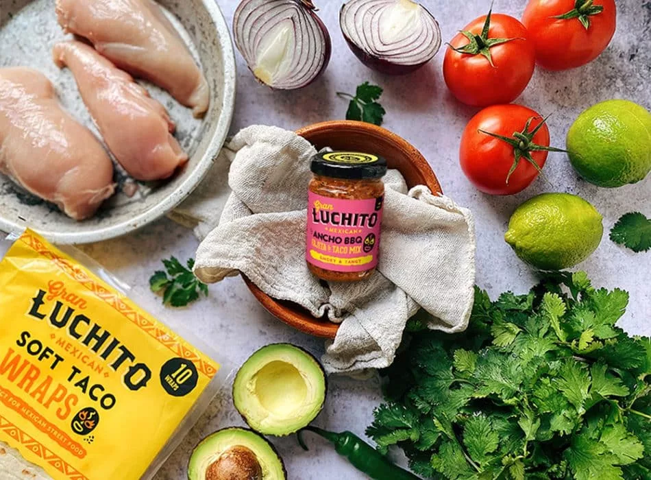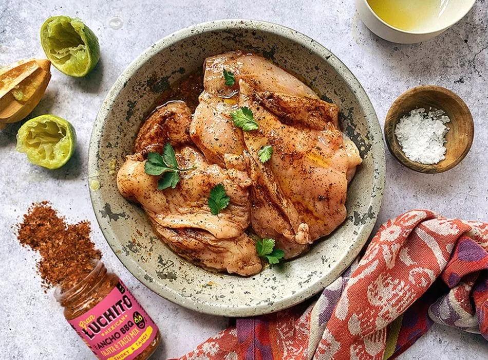 Gran Luchito Ancho BBQ Fajita and Taco Mix is a premium hand-blended seasoning crafted in Mexico using the finest ingredients. This vibrant blend combines habanero chilli, Mexican lime, and traditional herbs including paprika, oregano, and sumac for an authentic, zesty kick. Ideal for seasoning chicken, meat, or fish for the oven, grill, or barbecue, it delivers bold flavour in an instant. Simply stir well before use and enjoy restaurant-quality results at home.