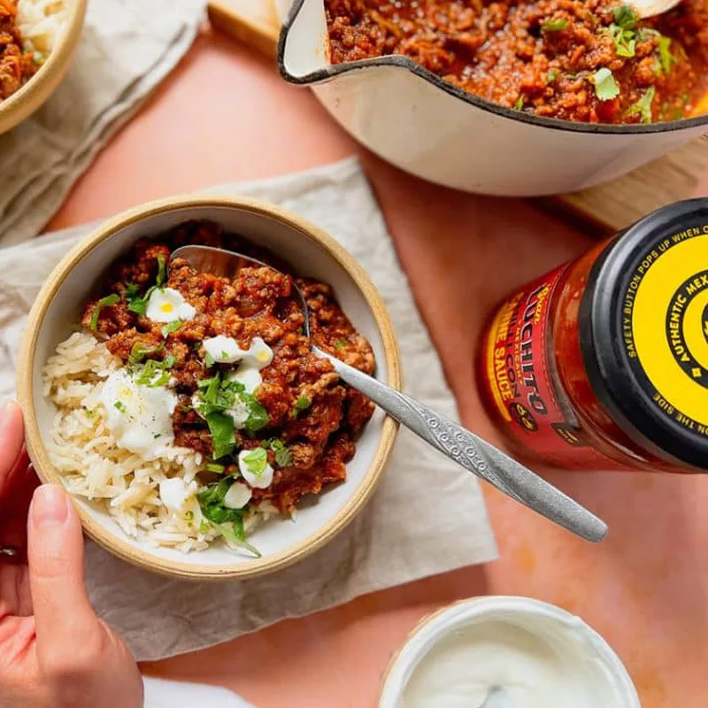 Gran Luchito’s Chilli Con Carne Sauce brings authentic Mexican flavour to your kitchen without the complexity. Made in Mexico using fresh ripe red tomatoes, tomato paste, jalapeño peppers, chipotle chillies, and a carefully blended selection of Mexican spices. Just stir well, add your ground beef, and enjoy a delicious homemade chilli in minutes. A versatile sauce perfect for quick weeknight dinners or meal prep.