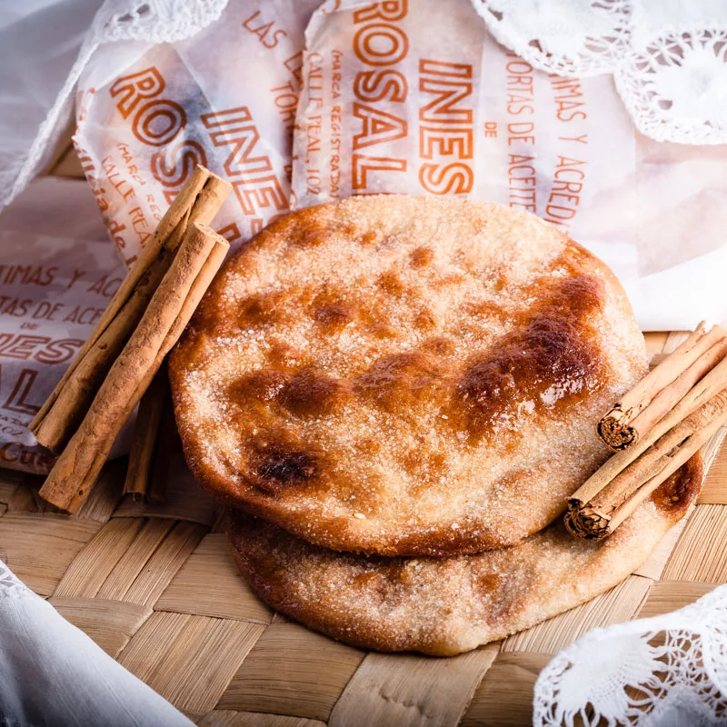 Handmade Spanish tortas crafted with extra virgin olive oil and a delicate touch of natural cinnamon. Vegan, lactose-free, and free from artificial dyes or preservatives.