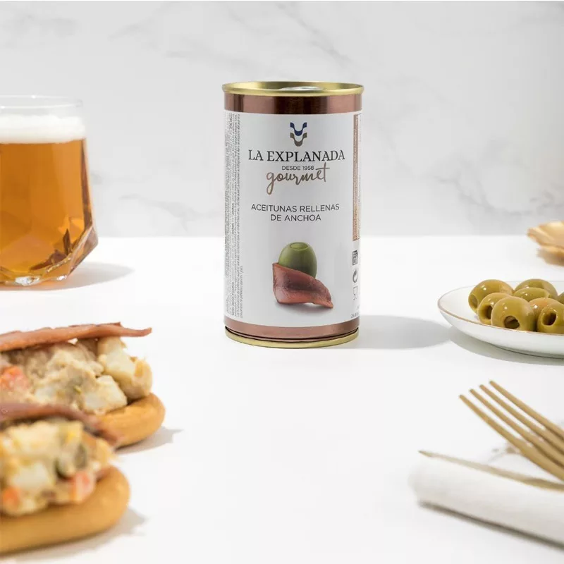 These premium gourmet anchovy-stuffed Manzanilla olives are carefully prepared by La Explanada, a leading Spanish olive producer based in Alicante with over 60 years of expertise. Spanish Manzanilla olives are internationally renowned for their superior quality and the perfect balance of Mediterranean freshness with the character of Andalusian olive groves. Rich in vitamins A and E, these olives make an ideal companion to dry wine or beer, and work beautifully in salads or served as an appetizer. Pasteurized and ready to enjoy straight from the jar.