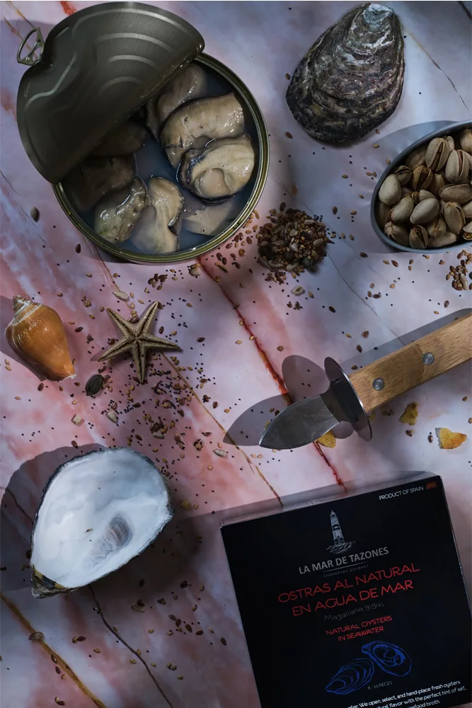 These premium oysters are carefully opened, selected, and prepared by hand to preserve their natural flavor and delicate texture. Preserved in ozonated seawater with bay leaf, they create a delicious seafood broth that captures the essence of the sea. Perfect as an elegant tapa or appetizer. Once opened, refrigerate and consume within 24 hours.