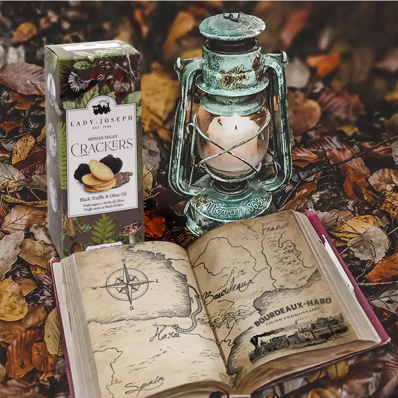 These sophisticated crackers are crafted with stone-ground wheat flour and 20% olive oil infused with black truffle (Tuber Melanosporum Vitt), delivering an intense flavor and exquisite aroma. The dough is left to rest for 12 hours before being slowly cooked to preserve nutrients and achieve an exceptionally thin and crunchy texture. Lady Joseph’s founder, Josephine Bernaud, created these recipes inspired by her childhood in Bordeaux, and her family continues to prepare them using the same extraordinary techniques and local ingredients that made her Salon du Thé legendary.