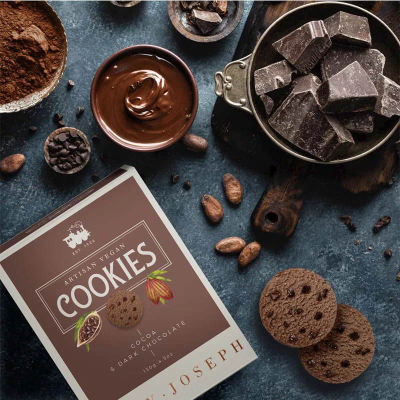 These delightful cookies combine dark chocolate and pure cocoa in a recipe inspired by Josephine Bernaud’s childhood in Bordeaux. Made with wheat flour, vegetable oils, sugar, and 15% dark chocolate, each bite delivers creamy intensity and authentic flavor. The Lady Joseph family continues the legacy of this historic recipe, originally served at the Salon du The opened in 1926, now available as part of their exquisite selection of gourmet cookies and crackers.