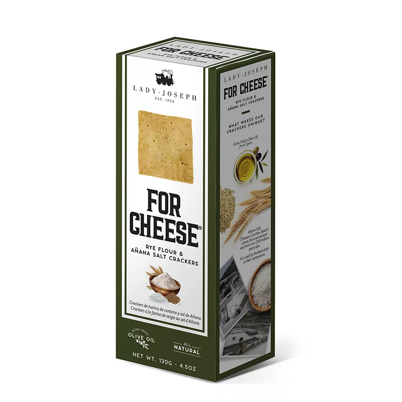 Crispy crackers combining soft rye flour with prized Añana Valley salt from the Basque Country, enriched with extra virgin olive oil. The perfect companion for cheese and gourmet entertaining.