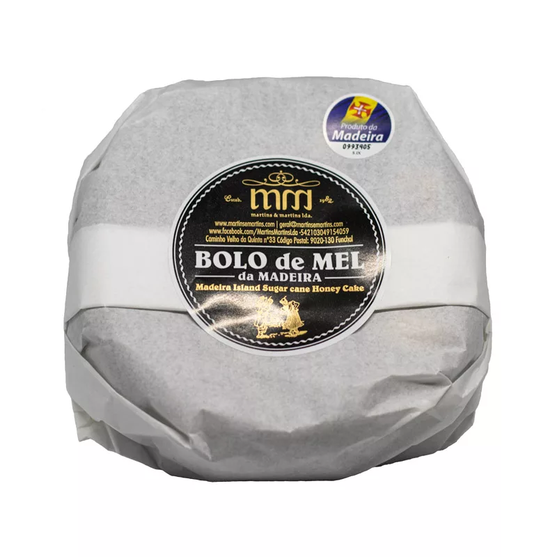 This authentic Madeira honey cake has been perfected over centuries, originating in the 15th-16th centuries and refined through subsequent centuries with European and Indian spices. The cake combines cane honey, raisins, almonds, and walnuts with warming spices including cinnamon, fennel, nutmeg, and cloves. Traditionally broken by hand, it pairs beautifully with Madeira wine or sweet liqueurs for an authentic Portuguese experience.