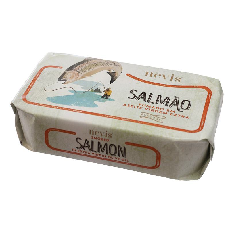Portuguese smoked salmon fillets preserved in extra virgin olive oil. A natural source of omega-3, proteins, and vitamins.