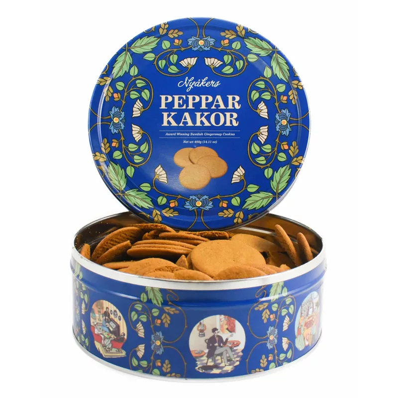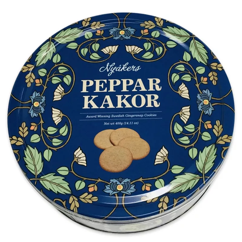 Nyakers Gingersnaps are the world’s finest and thinnest ginger cookies, prepared with a carefully balanced spicy blend of clove, cinnamon, and ginger. Baked at home in Västerbotten, Sweden, according to the original recipe from 1952, these crispy biscuits deliver authentic Nordic flavour year after year. Consistently winning major consumer taste tests, Nyakers gingersnaps are presented in an elegantly patterned tin, making them perfect for gifting or personal enjoyment.