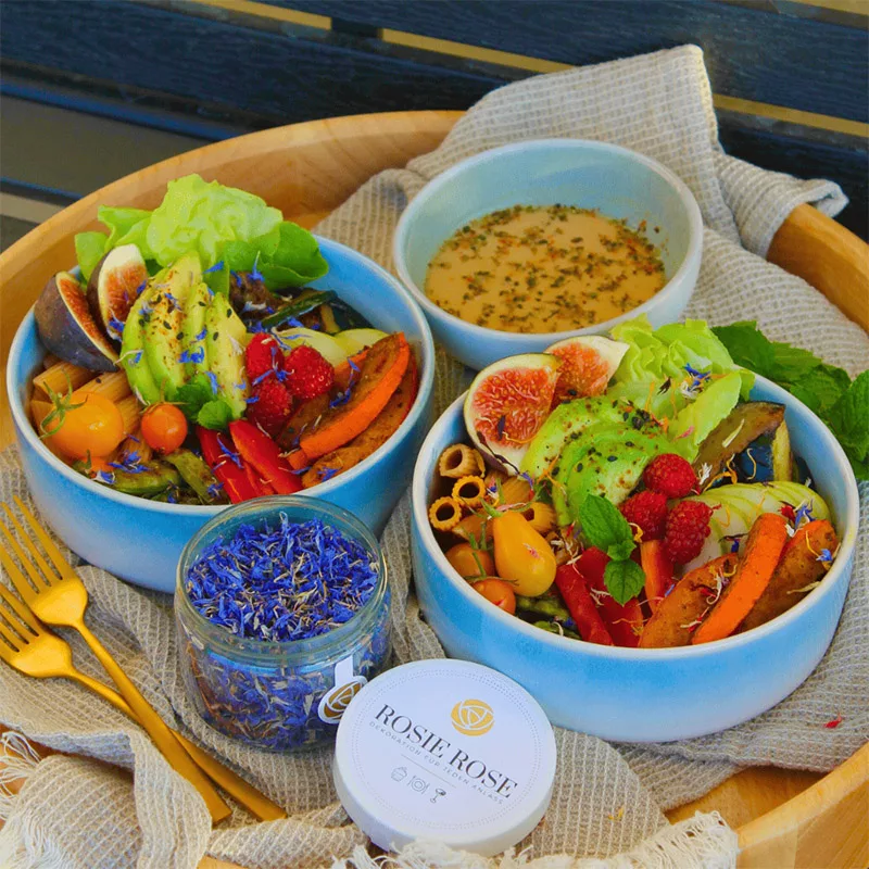 These dried blue cornflowers from Rosie Rose bring sophisticated visual appeal to any culinary creation without affecting flavor. Hand-selected from controlled natural cultivation areas across Europe and non-EU countries, each petal is carefully sun-dried to maintain optimal color and texture. Completely tasteless and pesticide-free, they are ready to use straight from the package. Store in a cool, dry place away from light, and enjoy their natural beauty for up to three years after opening.