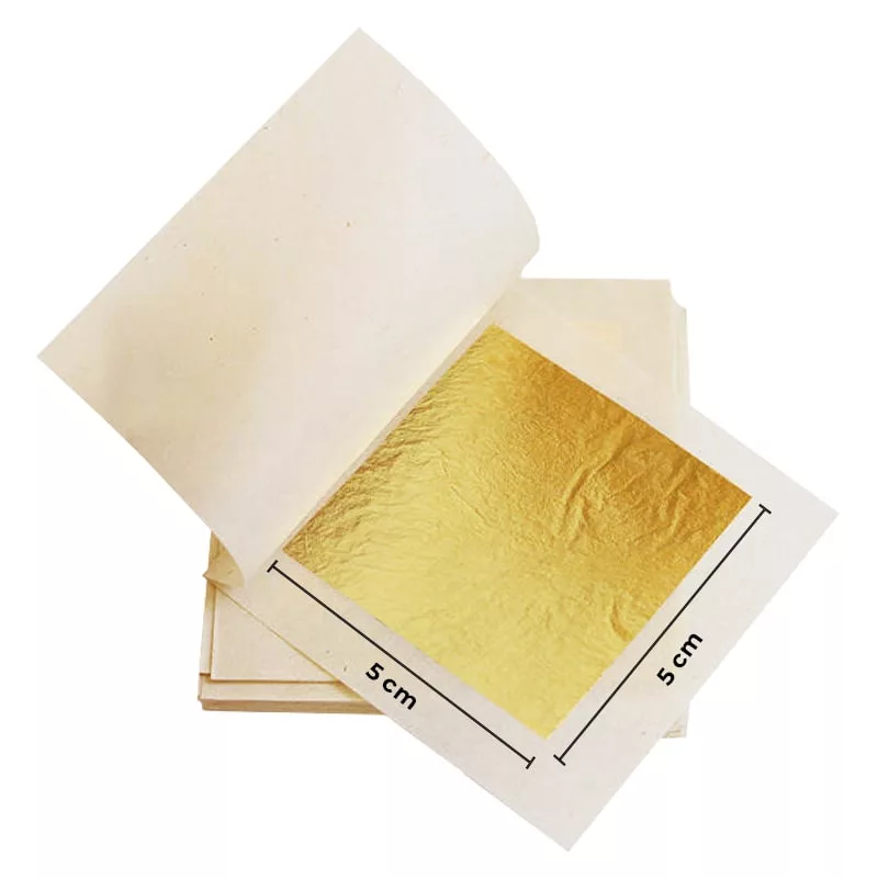 Each pack contains five sheets of pure, food-safe 24-carat edible gold leaf measuring 5×5 cm. The leaves are mounted on a fine carrier foil for precise, effortless placement using fine tweezers. Tasteless and vegan, these sheets are ideal for creating elegant accents on cakes, chocolates, pastries, cocktails, and special dishes. Store unopened in a cool, dry place away from light for optimal shelf life of up to three years.