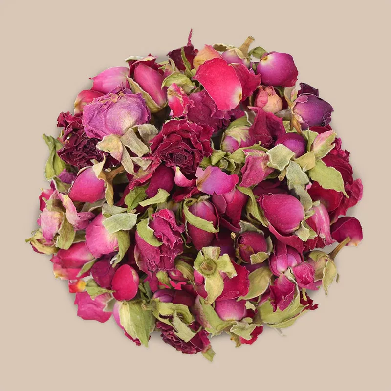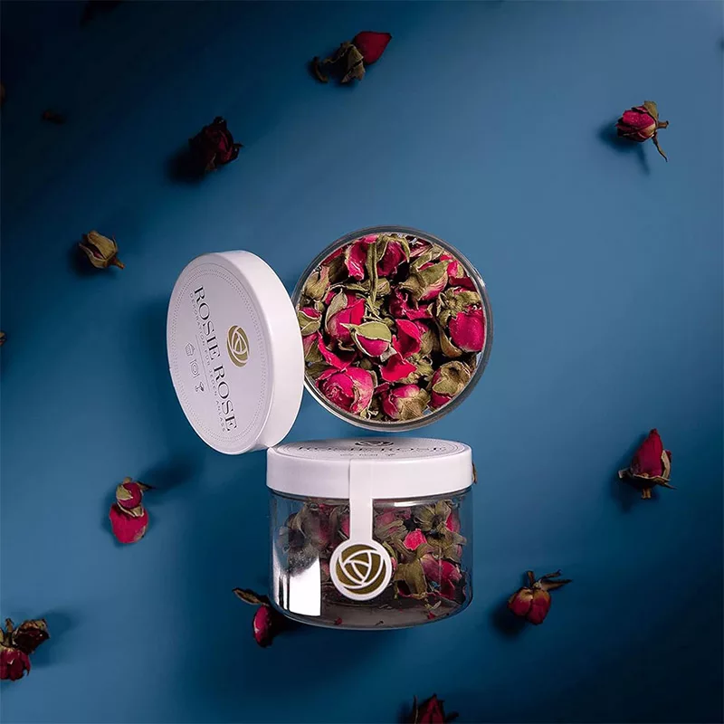 Rosie Rose dried rose buds are premium edible flowers carefully selected and gently dried to preserve their vibrant colour. These unsprayed, additive-free rose buds are versatile in the kitchen—use them to refine salads, soups, sauces, pastries, or as elegant decorations for cakes and cocktails. Grown under controlled natural cultivation from non-EU origins, they add a sophisticated visual touch to any dish or event. Note: The green stems have a naturally bitter taste and are best removed before consumption.
