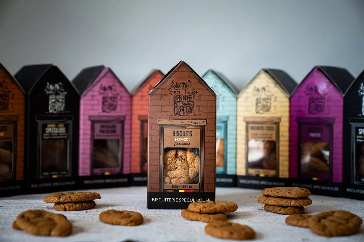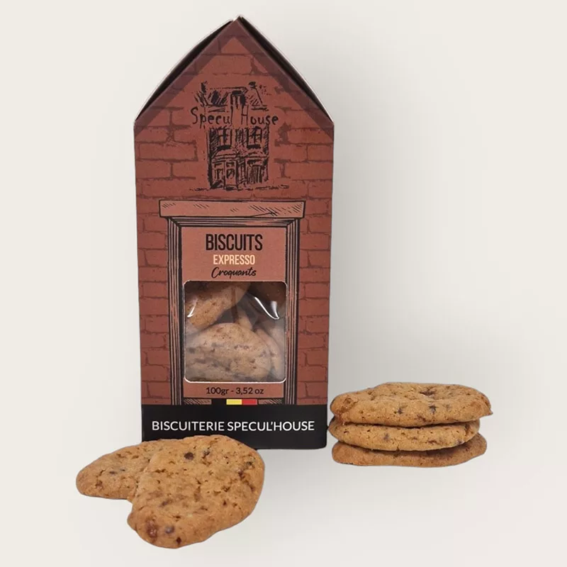 Specul’House Espresso Biscuits deliver an intense coffee experience with a chewy texture and fresh ingredients. Each biscuit combines sugar, wheat flour, and 13.5% coffee seeds with freeze-dried coffee for an authentic espresso flavor. Made in Belgium using high-quality ingredients and carefully formulated with natural raising agents. Perfect for coffee enthusiasts seeking a premium gourmet biscuit.
