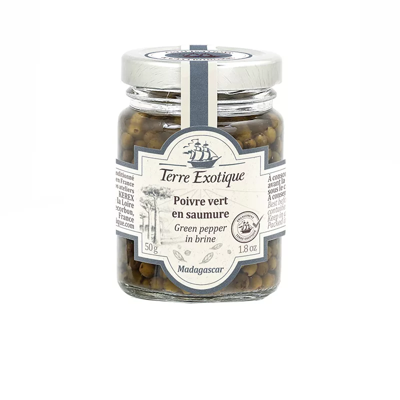 Crunchy green peppercorns from Madagascar preserved in brine, delivering fresh and fruity flavors with delicate spice. Perfect for elevating red meat and fish dishes.