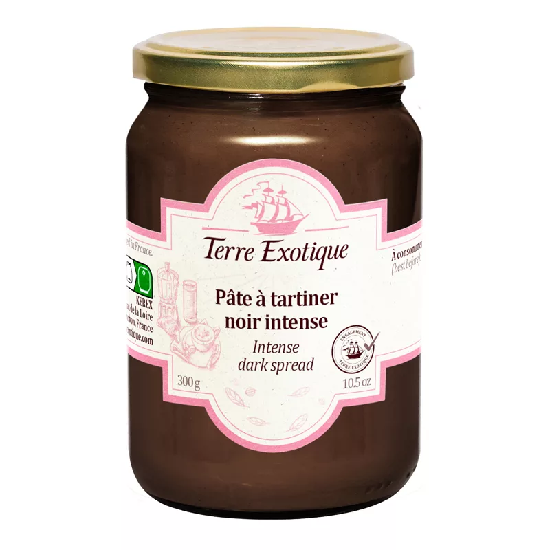 Terre Exotique’s Intense Dark Spread combines the deep, complex flavors of carefully roasted cocoa with the natural sweetness of premium hazelnuts. The smooth, creamy texture melts deliciously, releasing lingering chocolate notes that satisfy even the most discerning chocolate lovers. Made with pure cocoa from sustainable plantations and enriched with finely selected hazelnuts, this spread is versatile enough for breakfasts, snacks, and desserts. Perfect as a topping for pancakes, swirled into brownies, or mixed into sauces for fresh fruit and pastries.