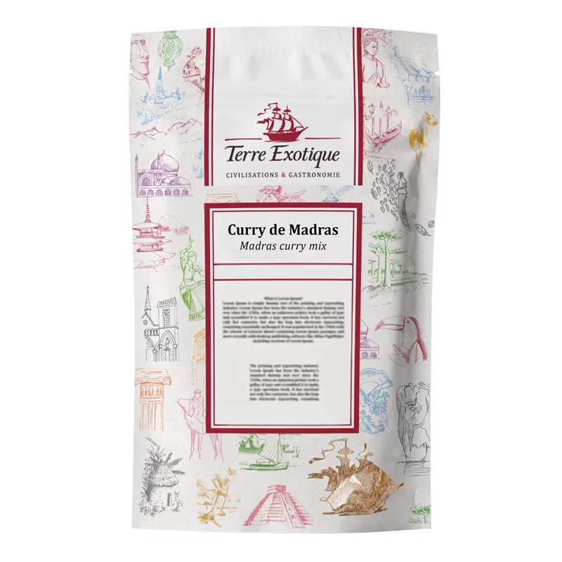 Terre Exotique’s Madras curry is a vibrant red spice blend inspired by the classic Chennai preparation, combining turmeric from India with coriander, cumin, black pepper, fennel, fenugreek, ginger, cardamom, cinnamon, cloves, and green cardamom. This versatile blend brings authentic Indian warmth to any dish, whether you’re cooking savory curries or experimenting with sweet applications. Ideal for lamb, white meat, and vegetables, especially when paired with tropical fruits like bananas, apples, or pineapple. Store in a dry place at room temperature to preserve its aromatic qualities.