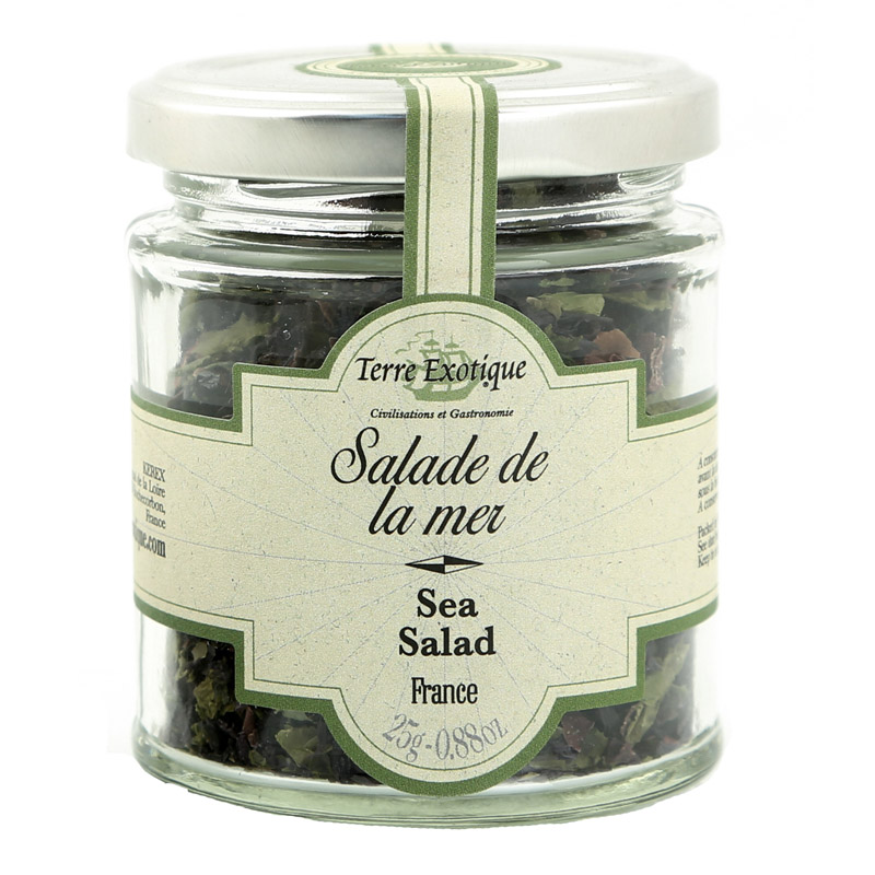 Terre Exotique’s Sea Salad is a carefully curated mixture of dulse, wakame, sea lettuce, and nori—four nutrient-rich seaweeds that bring authentic oceanic flavor to your kitchen. Sprinkle like fine herbs over omelets, soups, summer salads, and fish dishes, or incorporate into butter to accompany oysters and seafood. For best results, add this delicate blend at the end of cooking to preserve the fragile leaves and retain all aromatic qualities. A chef’s favorite for elevating simple preparations into sophisticated culinary creations.