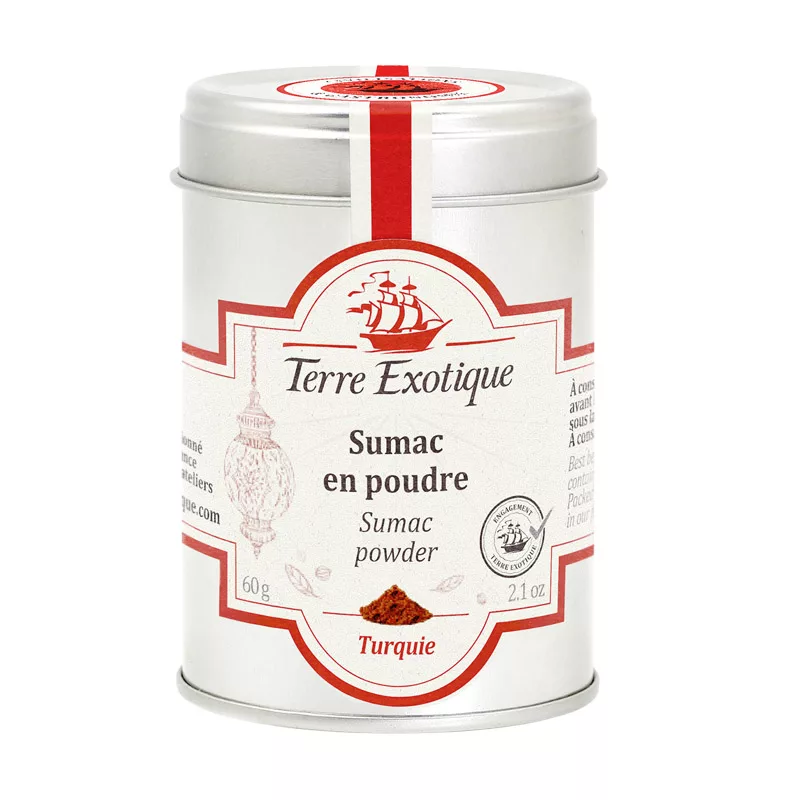 Terre Exotique Sumac Powder delivers an authentic, penetrating bittersweet flavor that’s mild enough to use generously in your cooking. This versatile spice is widely used across the Middle East and Mediterranean regions to add acidic and spicy notes to salads, marinades, and grilled meats. Historically, Romans used sumac in place of vinegar and lemon. Simply rub it under meat before grilling for an aromatic, delicious crust, or mix with yogurt and herbs for a refreshing sauce.