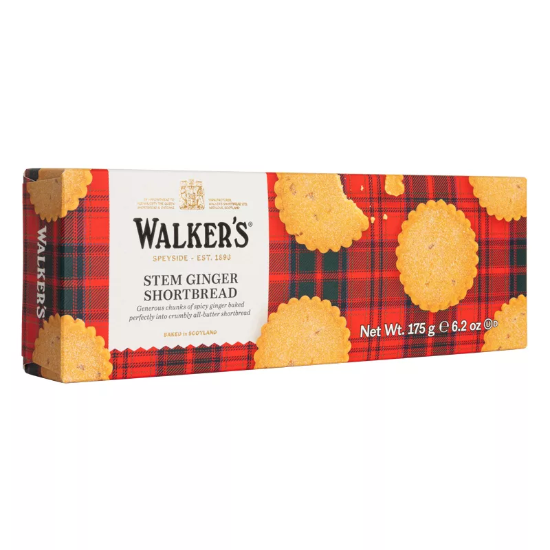 All Walker’s products are made in Aberlour, Scotland, using only the finest ingredients with no artificial flavourings or colourings. This stem ginger shortbread features candied stem ginger and ground ginger blended into buttery shortbread, created using the traditional baking technique established by founder Joseph Walker over a century ago. Suitable for vegetarians and certified Kosher. Made in Scotland with EU and non-EU ingredients.